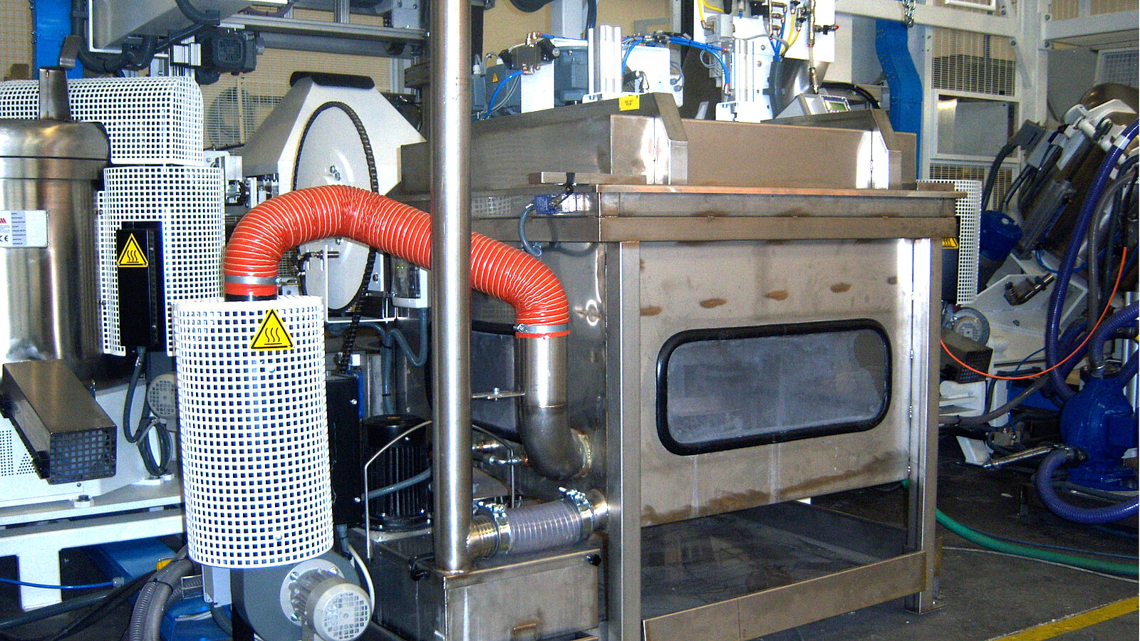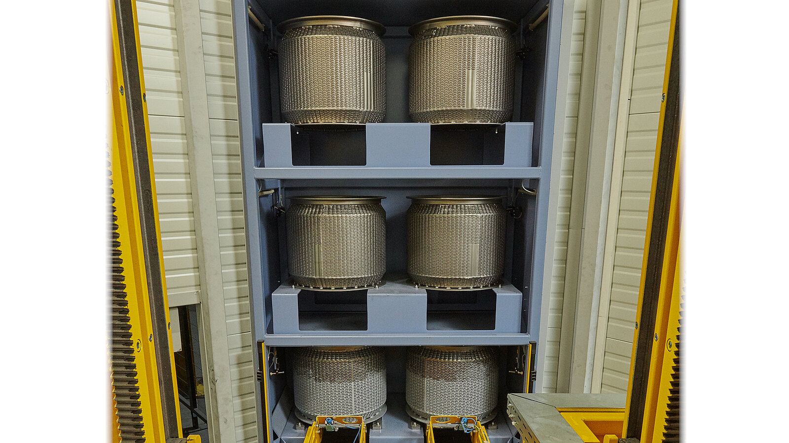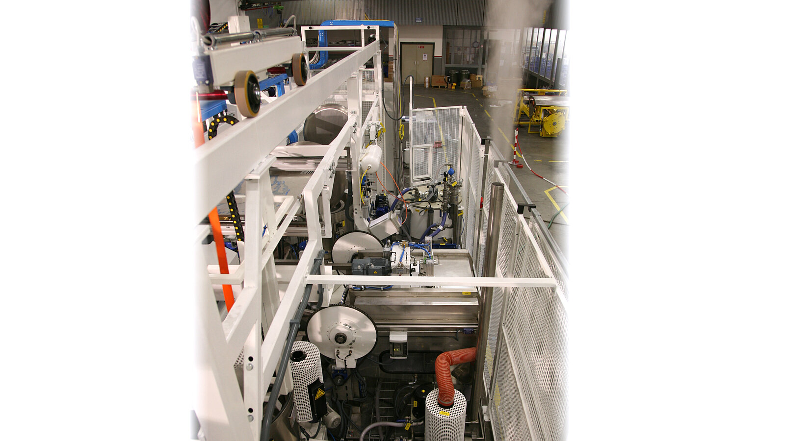 Dabei können die Körbe nach jedem Beschichtungsvorgang sowohl innen als auch aussen mit sehr hohem Spritzdruck gereinigt werden. Neben der Verhinderung einer Verunreinigung der Medientanks wird so auch eine Teilevermischung ausgeschlossen, da die Reinigung der Körbe mit der Öffnung nach unten vollzogen wird.