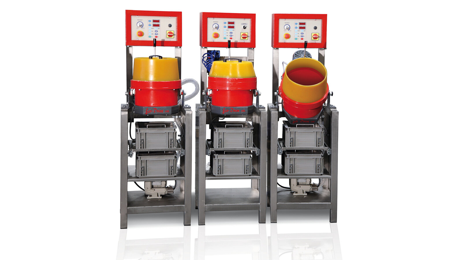 Tellerfliehkraftanlagen von Forplan zeichnen sich durch eine extrem hohe Effizienz aus. Im Besonderen Kleinteile können mit dieser Maschine bestens entgratet aber auch hochglanzpoliert werden.