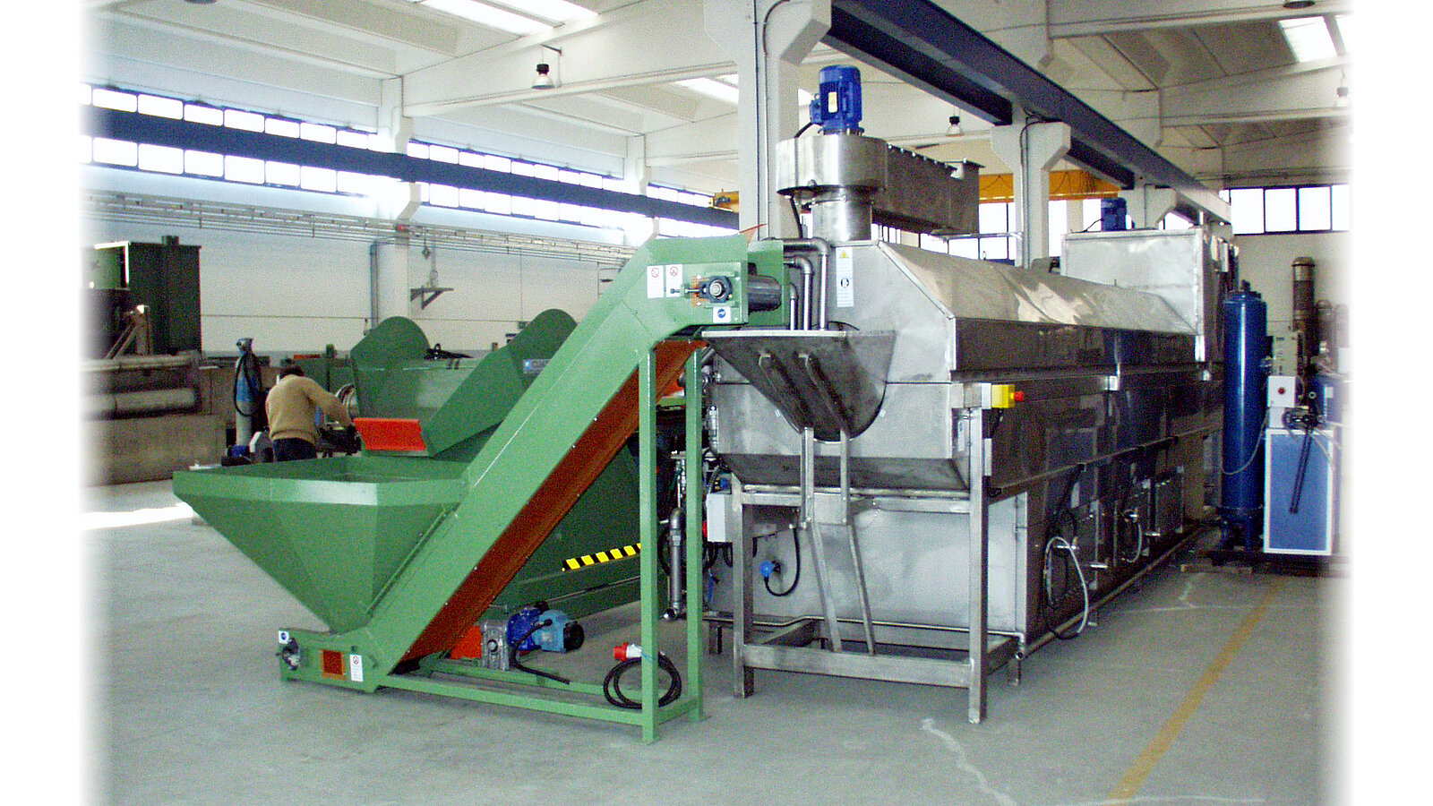 Die Ausführung unserer Trommelwaschanlagen (Trommeldurchmesser, Anlagenlänge, Prozessschritte, etc.) variiert in Abhängigkeit zu den Anforderungen des Kunden.